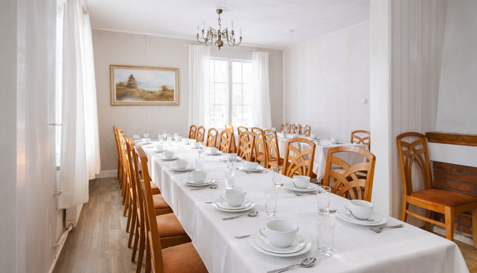 Kristillan Kartanon juhlasali huokuu historiallista charmia ja arvokasta tunnelmaa. Salin korkeat ikkunat tulvivat luonnonvaloa, luoden täydelliset puitteet jopa 60 hengen tilaisuuksille. Olipa kyseessä häät, yritysjuhlat tai perhejuhlat, tilan muunneltavuus ja kauneus takaavat ikimuistoisen elämyksen jokaiselle vieraalle.